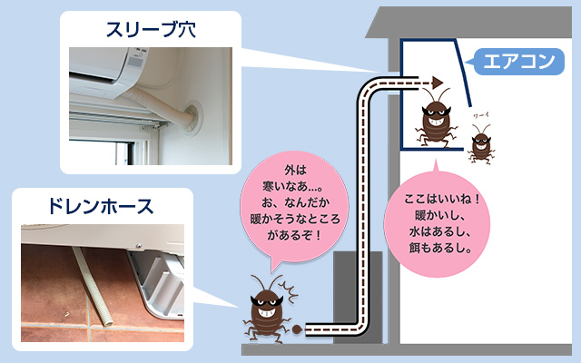 なぜエアコンがゴキブリの通り道になっているのでしょうか?
