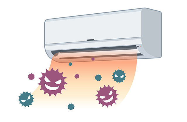 また、エアコン内部にカビが増殖している状態でエアコンを稼働すると、空気と一緒にカビも室内に放出されるため、ニオイの原因になるだけでなく健康にも影響を及ぼすことがあります。