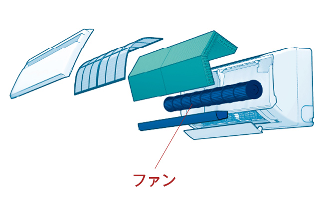 ファンが汚れていると、エアコンから送り出される風に汚れが含まれてしまいます。