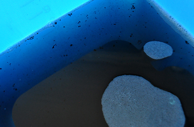 一つ目の写真は、寝室のエアコンを分解洗浄して出てきた汚れです。黒い粒が浮いており、水も黒っぽく見えます。汚れのほとんどは、ホコリやカビだと思われます。