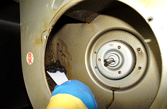 油汚れがついていると、そうでない状態よりも汚れやすくなります。それは、油汚れが「接着剤・糊」のような働きをして、ホコリなどの汚れが付着しやすくなり、さらに汚れを誘引してしまいます。エアコンクリーニングをした際に汚水が茶色っぽい場合は、換気扇を確認すると油汚れがこってり!ということも少なくありません。