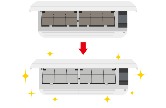 冷房・除湿運転後に送風運転でこまめにエアコン内部を乾燥させていても、エアコンがホコリなどで汚れていると、カビが発生しやすくなります。また、フィルターが目詰まりしていると運転効率が下がり、電気代も高くなります。