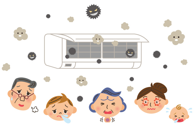 エアコンが汚れていると、エアコンから出る風にカビやホコリ、雑菌などが含まれている可能性があります。