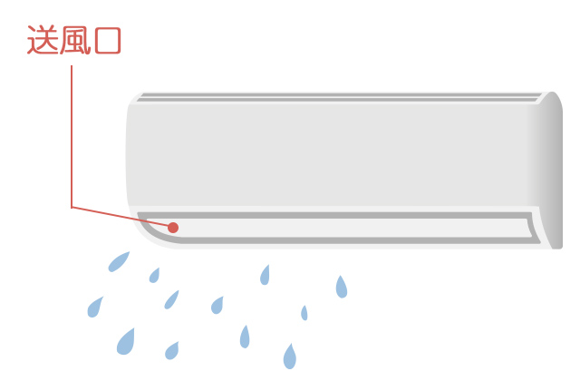 ときには、排水しきれなかった水滴が、送風ファンで送り出される風と一緒に吹き出し口から飛んでくることもあるのです。