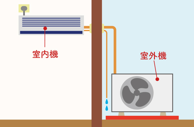 まずはエアコンの仕組みから見ていきましょう。一般的なエアコンは室内機と室外機の両方がそれぞれの役割を果たすことで作動する仕組みです。