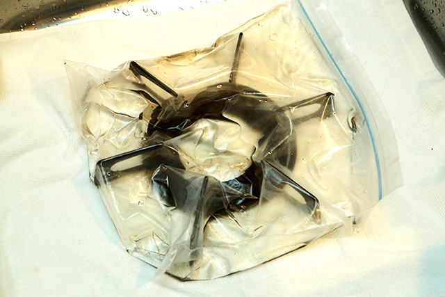- ①食品保存用プラスチック袋に外した五徳を入れる