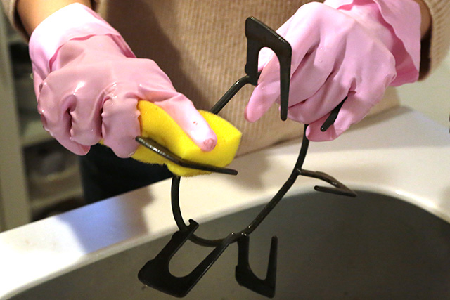 - ⑥仕上げに台所用スポンジを使って五徳全体を擦る