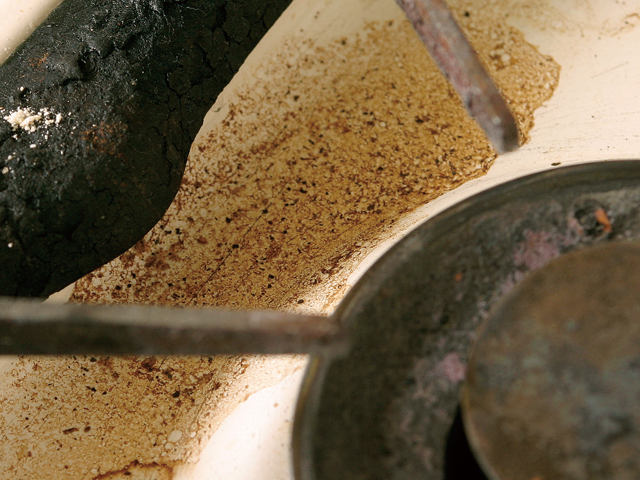油汚れは、水分を含んでベタベタしている間は、アルカリ洗剤でサッと拭けば取れます。しかし、1年以上も放置してしまうと酸化がどんどん進み、カチカチの固まりになってしまいます。そうなると、必然的に強い洗剤や様々な器具を使う必要があります。
