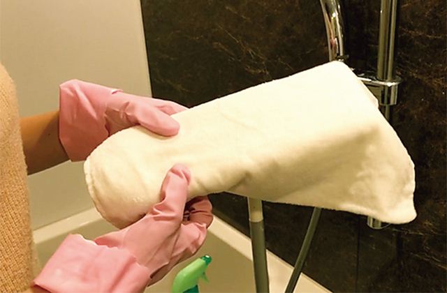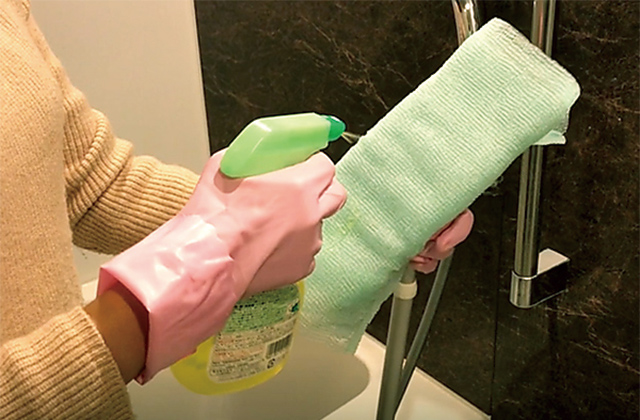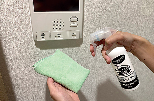 ⑤最後に除菌消臭スプレーをかけたタオルで拭き上げる。