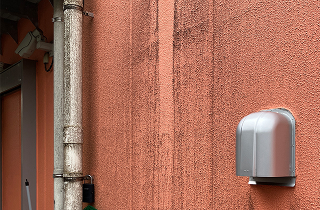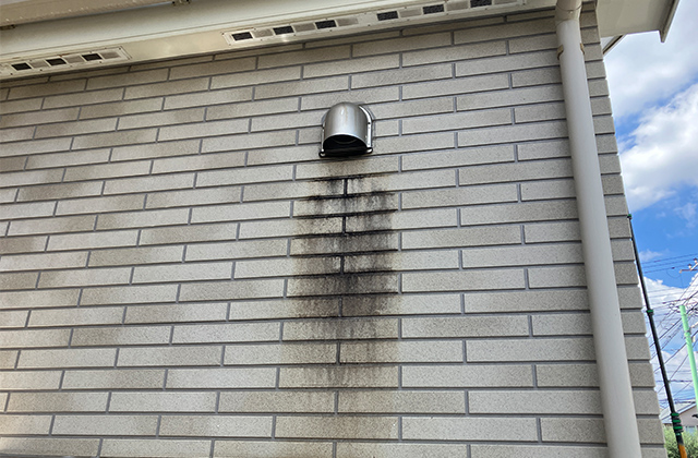 キッチンや浴室の換気口周りは、特に汚れが目立ちやすい部分です。換気扇を通して排出される油を含んだ空気や湿気が外壁に付着し、ベタつきや黒ずみの原因となります。