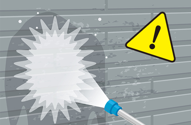 高圧洗浄機はキレイに外壁の汚れを落とせそうに見えますが、塗装が剥がれたり、外壁の隙間から水が入り込んで内部を傷める恐れがあります。特に市販の高圧洗浄機は出力が調整しづらいため、外壁には使用しないことをおすすめします。