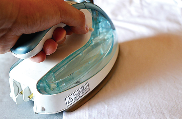 畳を焦がさないように、畳にタオルをあてスチームアイロンをかけます。