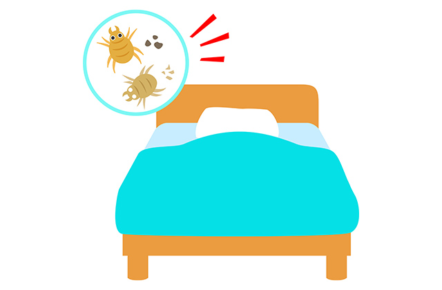 ダニはホコリやチリなどの汚れをエサとすることから、布団やベッドの下、カーペット、ソファといった場所に多く発生します。