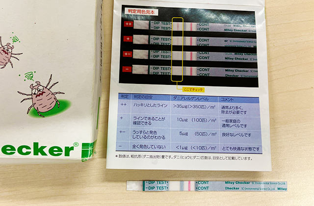 長期間掃除していないエアコンのフィルターを「ダニ検査用マイティチェッカー」で確認した結果、ダニは発見されませんでした。
