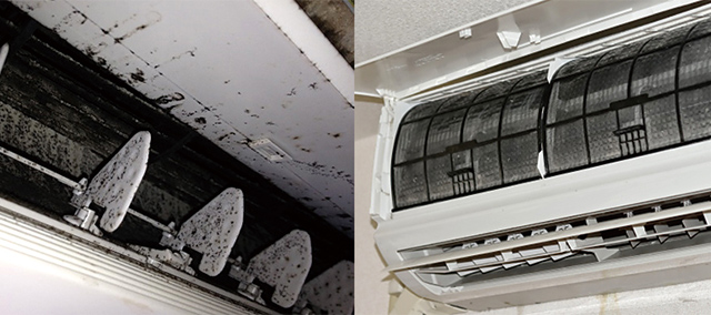 さらに、吹き出し口の奥に黒い点々が見える場合は注意が必要です。これはカビの可能性が高く、見えている以上にエアコン内部全体にカビが広がっていることもあります。