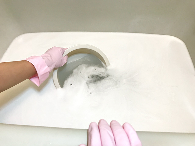 過炭酸ナトリウム200〜300gを循環口の付近から注ぎ入れ、お湯に溶かします。