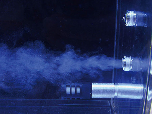 ミリ単位、ミクロン単位、ナノ単位の3種類の泡が合体することで、水中に長く残って汚れを分離させます。洗剤だけでも効果はありますが、ファインバブルによって、さらに高い洗浄効果が得られます。