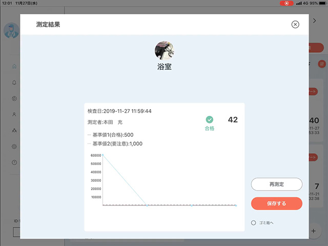 残念ながら、ご家庭では配管内の汚れやお掃除の後に本当にキレイになったのか、目に見えないので分かりません。そこで、おそうじ本舗はクリーニングの前後に汚れや菌の数値を測り、洗浄効果が見えるサービスをご提供しています。