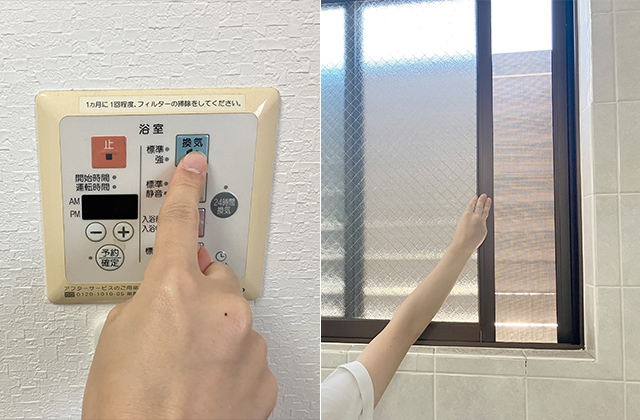簡単なお風呂掃除を終えたら、換気をして浴室内を乾燥させましょう。浴室内に湿気がこもったままだと、ピンクヌメリや黒カビが繁殖する原因となります。