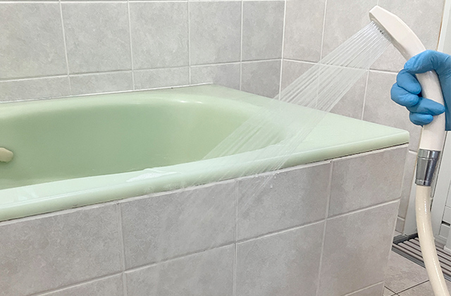 浴槽全体の汚れを落としたら、洗剤が残らないようにシャワーで十分に洗い流しましょう。