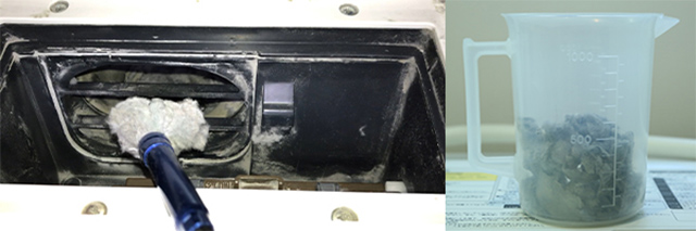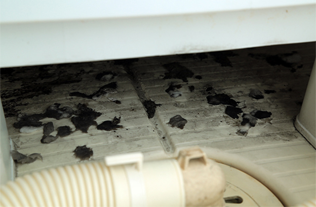 乾燥機能を使うことの多い家庭では、乾燥フィルターの奥やダクト内に大量のホコリがたまっていることが少なくありません。このホコリが湿気と混ざると、臭いニオイが発生する原因になります。