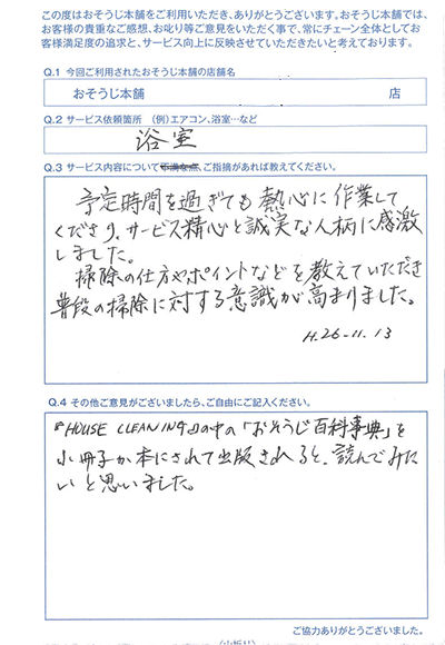 掃除の仕方やポイントなどを教えていただき普通の掃除に対する意識が高まりました