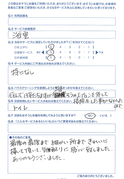 次回もおそうじ本舗を利用してみようと思いますか