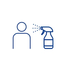 - お客様宅へお伺い前には、スタッフ自身の除菌処理を当社オリジナル除菌剤で行い、手指の消毒はアルコール除菌剤を用いて行います。