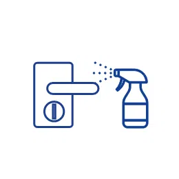 - 退出時には、ドアノブやスイッチプレート等の接触箇所を全て除菌効果のある洗剤で拭き上げを実施します。