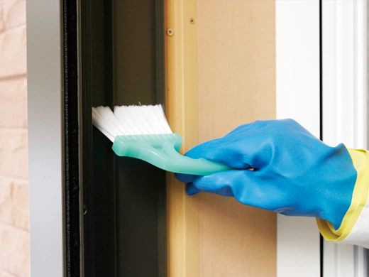 窓ガラスだけでなく、サッシ・レールに付着したを汚れも取り除きます。