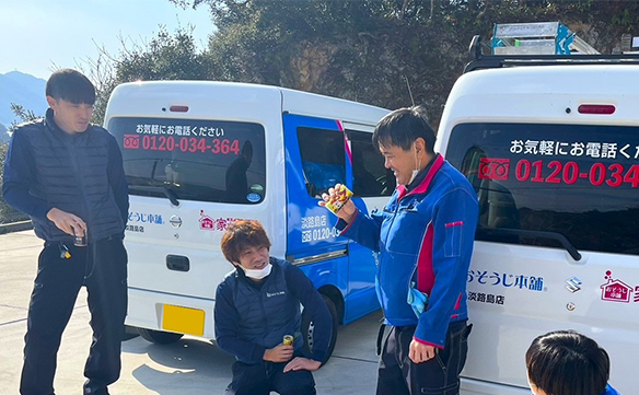 現在弊社では男性スタッフ4名、女性スタッフ3名の計7名体制で、淡路島のお客様へ「感動」と「満足」をお届けするサービスを心掛け、日々奮闘しています!