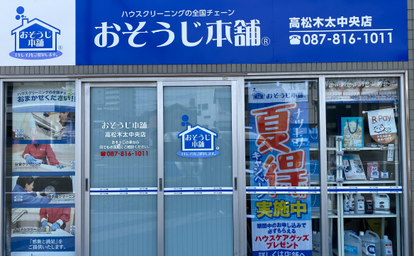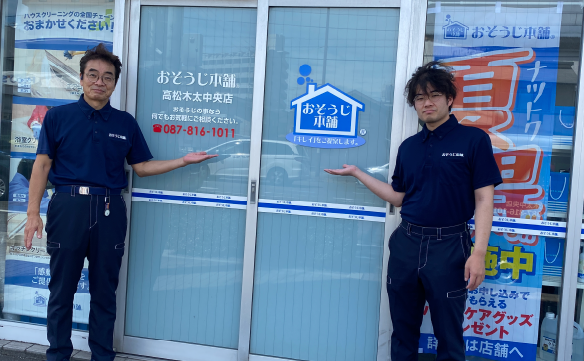 こんにちは、おそうじ本舗高松木太中央店の石橋と申します。高松市木太町を中心に、おそうじを通して「キレイ」を実現し、お客様に「感動と満足」をお届けするために、日々頑張っております。