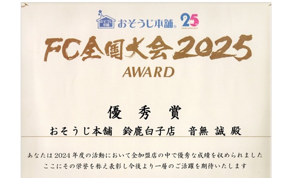 2025年4月1日時点でおそうじ本舗を始めて