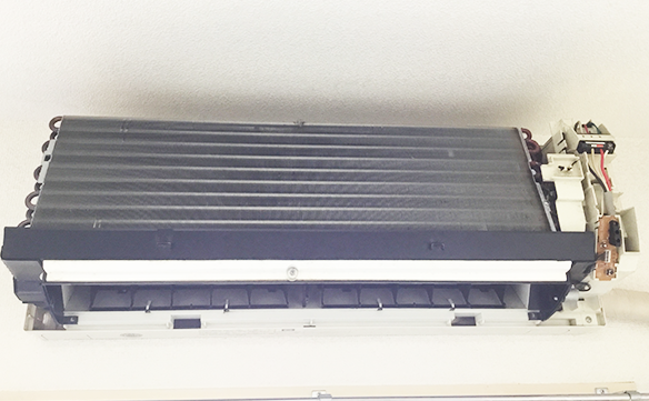 冷房運転はお部屋の熱い空気を吸い込んで、アルミフィンの力で急速に冷やしてお部屋に戻しています。そのため、アルミフィンにはお部屋のホコリがたくさん付着しながら結露を繰り返しているため汚れが溜まってしまうんです。汚れがたまると、部屋に戻す空気が汚れるだけでなく、熱交換効率が悪くなってエアコンに負荷がかかってしまうので、定期的にプロのクリーニングをすることがオススメです!