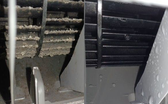 冷房運転はお部屋の熱い空気を吸い込んで、アルミフィンの力で急速に冷やしてお部屋に戻しています。そのため、アルミフィンにはお部屋のホコリがたくさん付着しながら結露を繰り返しているため汚れが溜まってしまうんです。汚れがたまると、部屋に戻す空気が汚れるだけでなく、熱交換効率が悪くなってエアコンに負荷がかかってしまうので、定期的にプロのクリーニングをすることがオススメです!