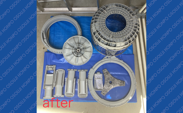 洗濯物をしていると、洗い終わった洋服に小さな汚れが付いていたり、洗濯機からイヤなにおいがした経験はありませんか?実はそのような現象は普段は見えない洗濯槽の裏側に溜まっている汚れが原因なんです。市販の洗剤では取り切れない汚れも、私たちのクリーニングであればプロの洗剤と確かな分解技術で隅々まで落とすことが出来ますので、ぜひお任せください!