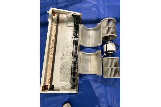 冷房運転はお部屋の熱い空気を吸い込んで、アルミフィンの力で急速に冷やしてお部屋に戻しています。そのため、アルミフィンにはお部屋のホコリがたくさん付着しながら結露を繰り返しているため汚れが溜まってしまうんです。汚れがたまると、部屋に戻す空気が汚れるだけでなく、熱交換効率が悪くなってエアコンに負荷がかかってしまうので、定期的にプロのクリーニングをすることがオススメです!